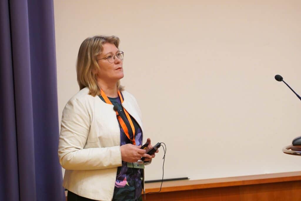 Maaseutuyksikön ympäristöasiantuntija Mia Forssell osallistui myös toisen päivän kansainvälisiin keskusteluihin.
