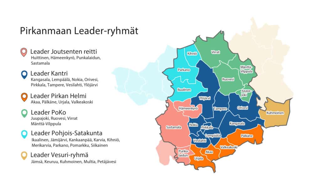 Leader-rahoitus Pirkanmaalla Leader-ryhmittäin