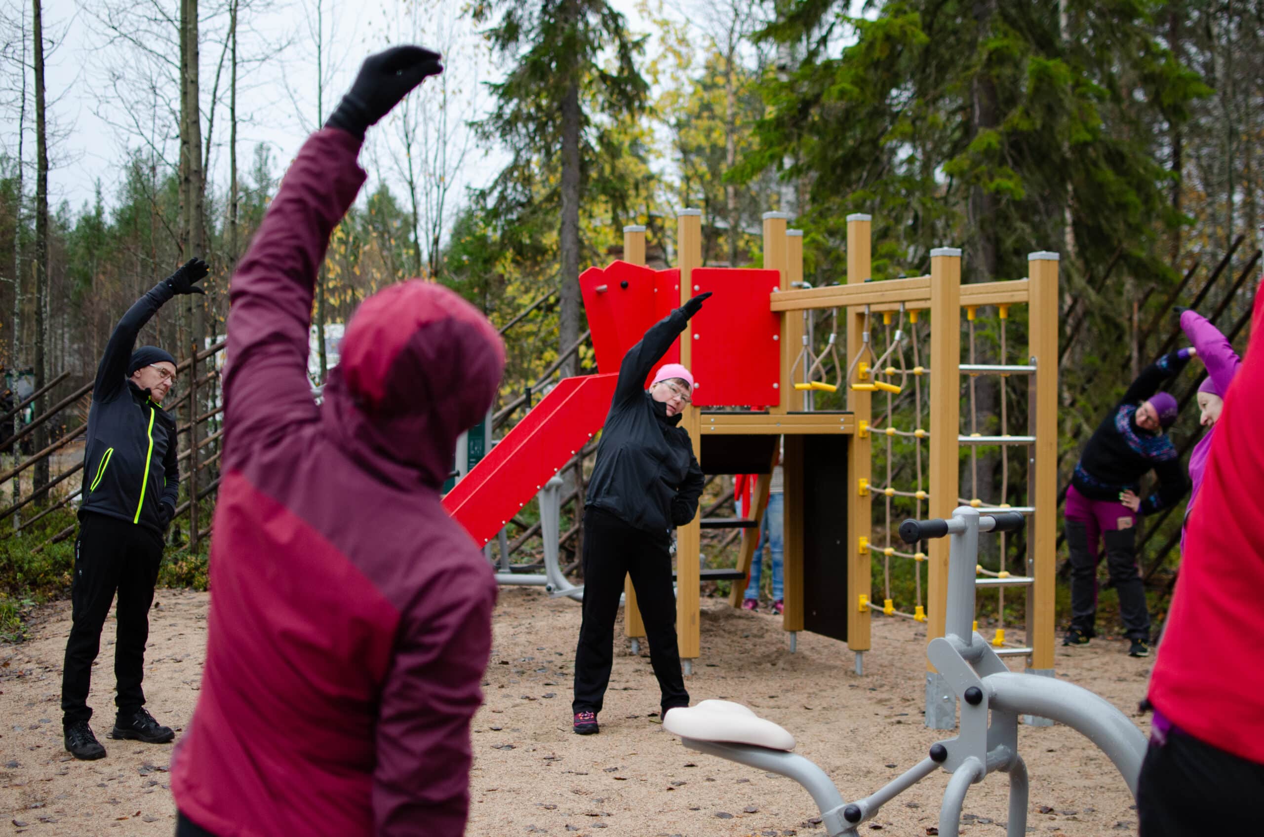 Uudet liikuntalaitteet ovat kaikkien käytössä. Kylän nuoret, työikäiset ja eläkeläiset käyvät jumppaamassa niissä vaikkapa kävelylenkin lomassa. Lasten leikkipuisto on samassa pihapiirissä, joten lapset voivat myös touhuta niissä. Sari ja Miia jopa yllättyivät kuinka aktiivisesti ja hyvin ne otettiin kylässä vastaan.