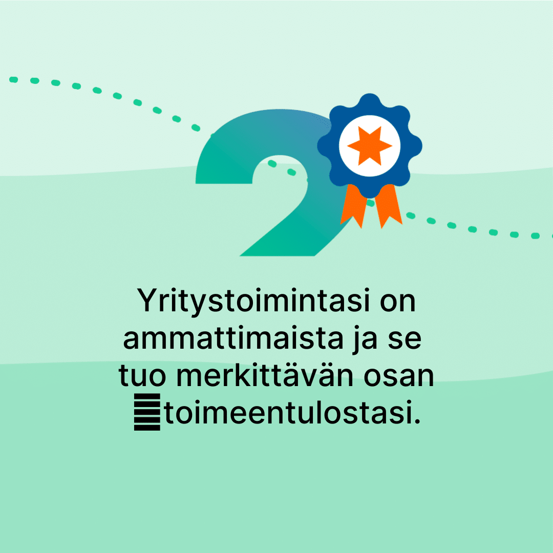 2. Yritystoimintasi on ammattimaista ja se tuo merkittävän osan toimeentulostasi.